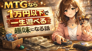 カードゲームってお金がかかる印象がありますよね。実は世界最高のカードゲーム「MTG」は1万円以内で始められて一生物の趣味になるんです。一生物の趣味を探されている方にMTGを1万円以内で始められる理由を解説していきます。